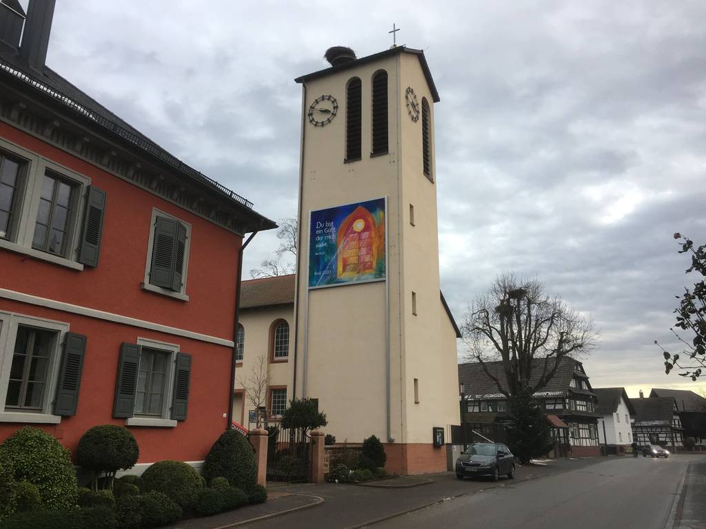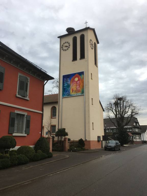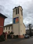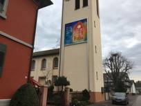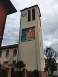 Seit diesem Jahr haben wir eine neue Konstruktion zum Aufhängen des Kirchturmbildes. So ist das Bild stabiler und kann Witterungs-